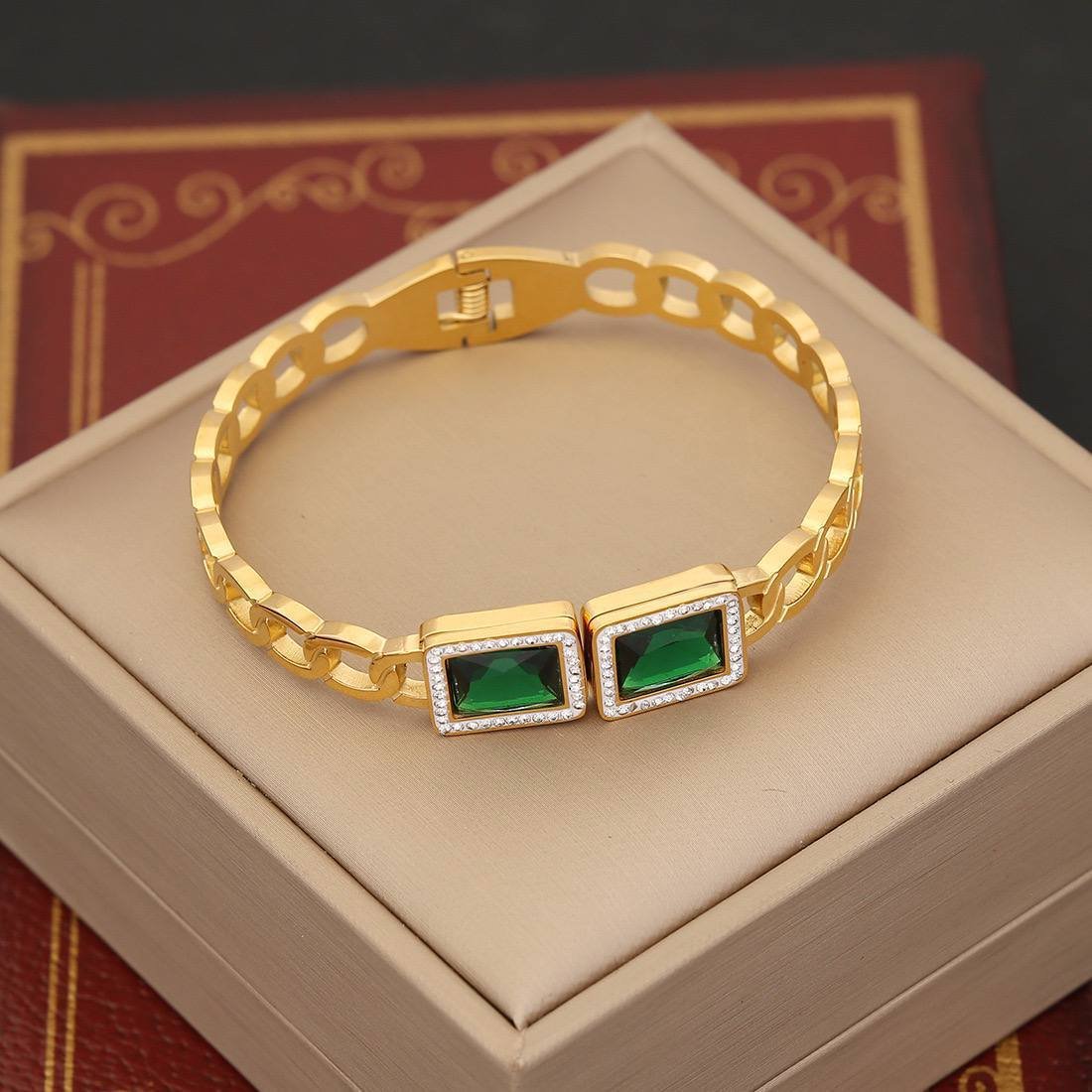 إسورة إستانلس بيور فص أخضر مبيغيرش لون نهائي بضمان شهرين فري سايز