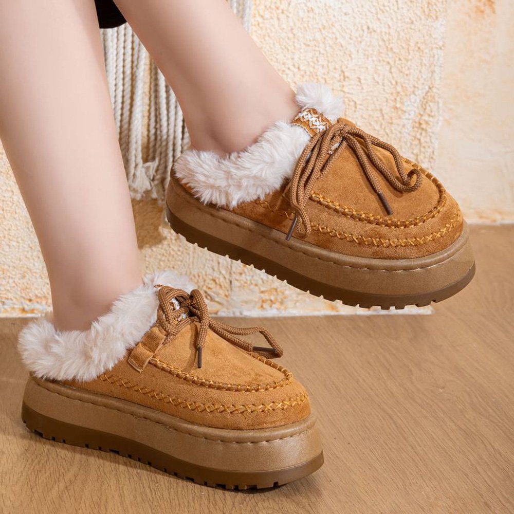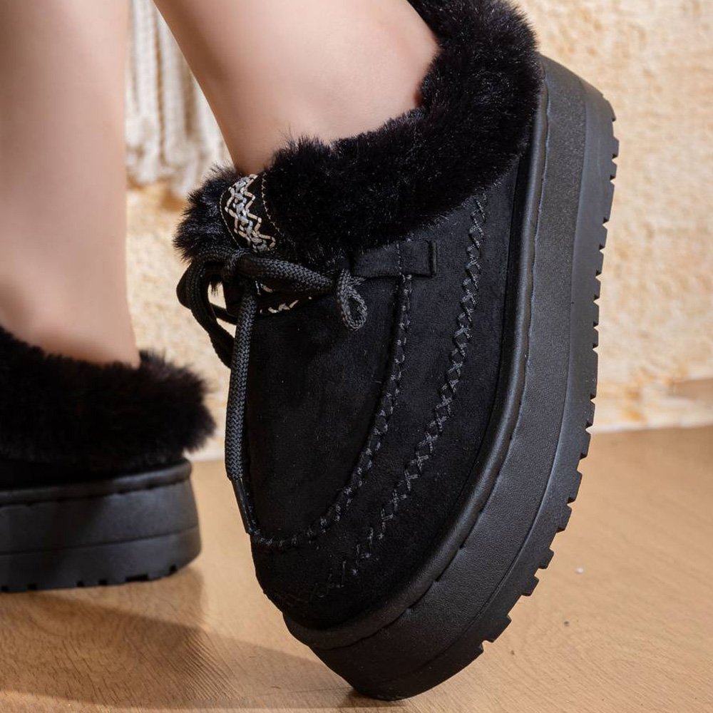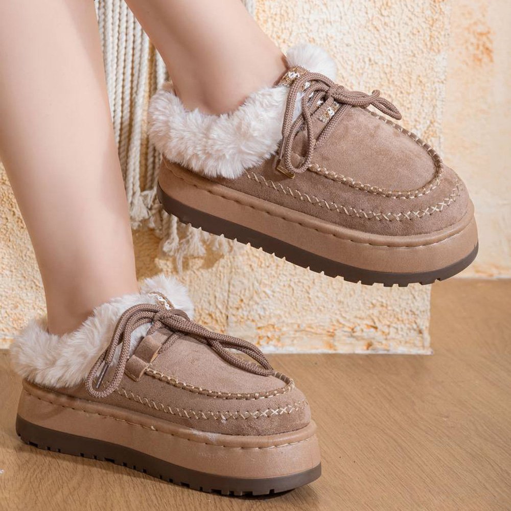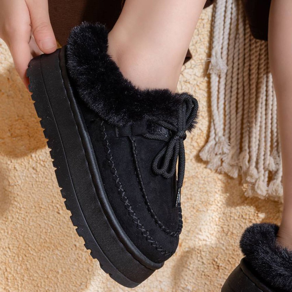 مصنوع بخامة فخمة وخفيف الوزن لراحة لا تُقارن، مبطن بالكامل من الداخل بالفرو الناعم لتدفئة القدمين، مع لمسة فرو خارجية تضيف لمسة أنوثة وأناقة مميزة.